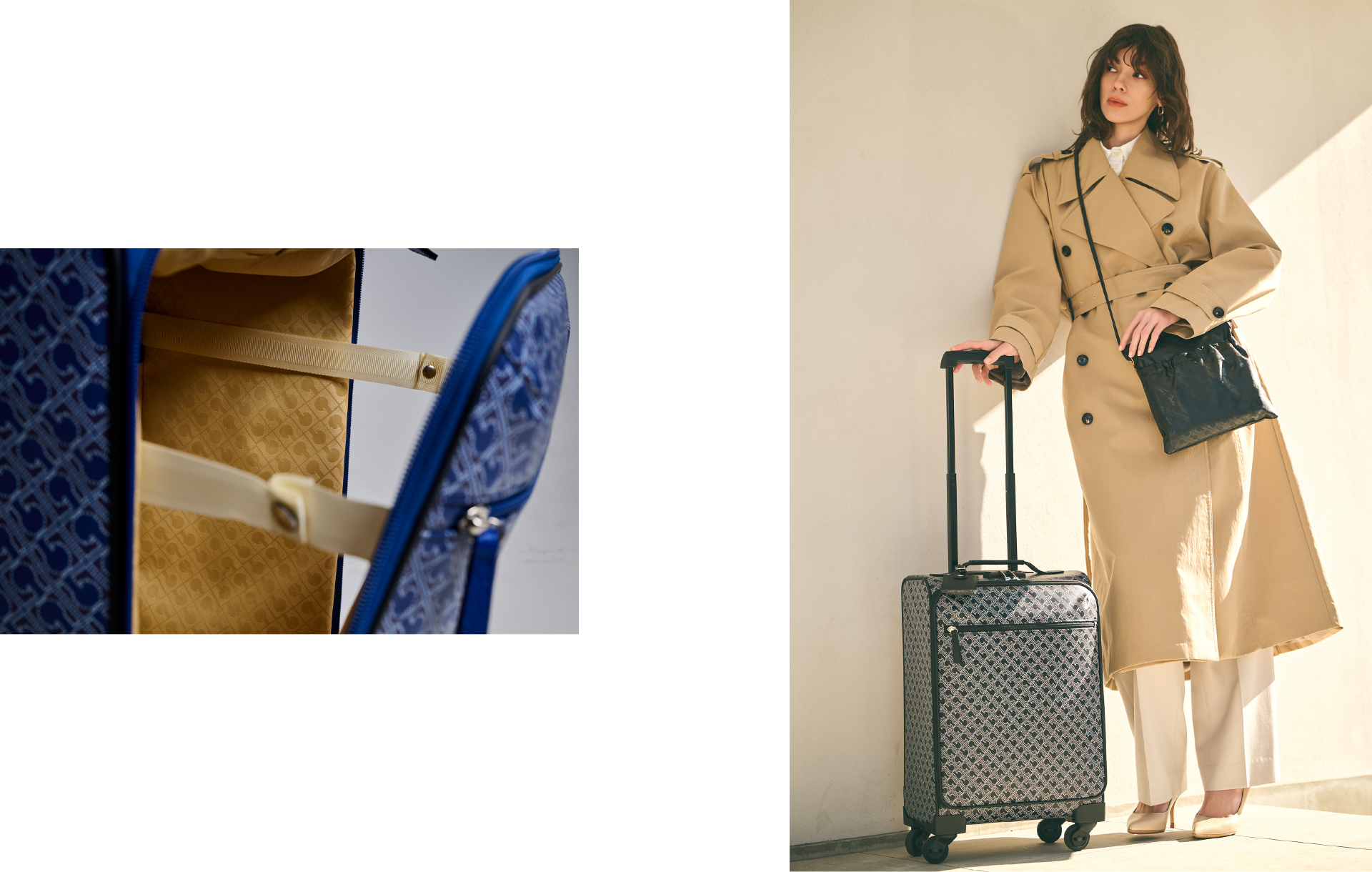 ブランドの気品を受け継ぐ新しいキャリーバッグは、軽やかさと洗練を兼ね備えたトラベルピース。滑らかに進む足取り、静かに整うフォルム。その佇まいは、旅先での所作までも美しく引き立てます。上質な内装に包まれた余裕ある空間が、心まで解き放つ。LIGHTNESS IN MOTIONを体現する、格別な旅のパートナーです。