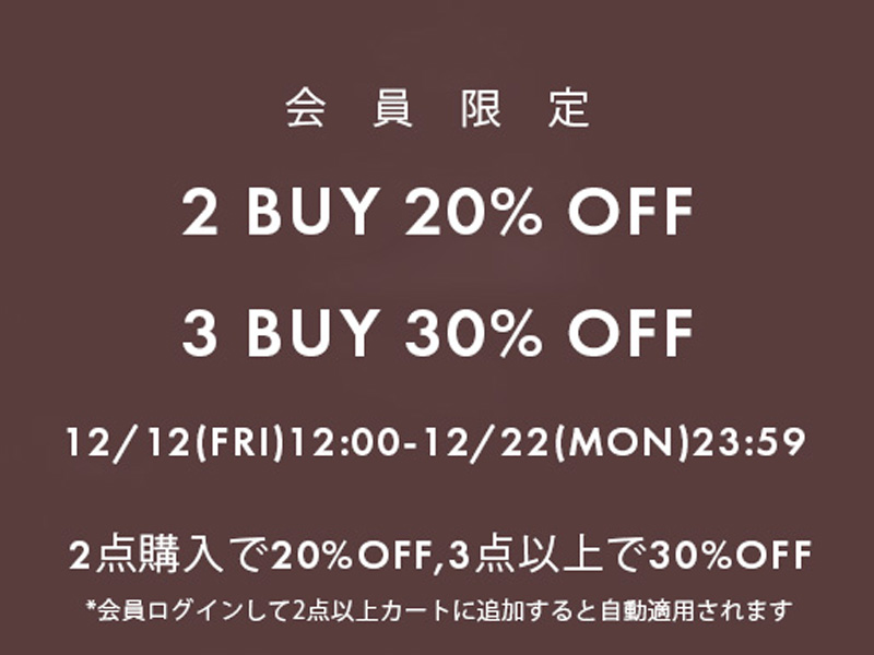 会員様限定!2点購入で20%OFF・3点以上購入で30%OFF