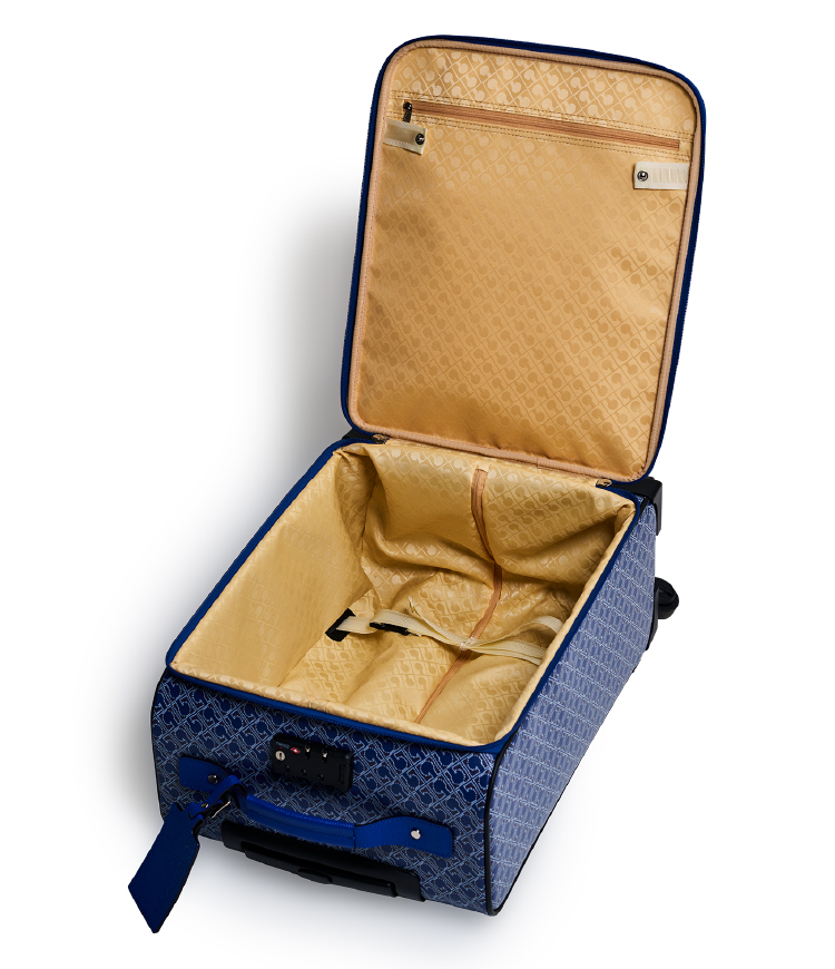 内装には、ブランドを象徴するソフティ素材と同様の軽やかなポリエステル生地を採用しました。表面から裏地に至るまであしらわれた、気品あるモノグラム。